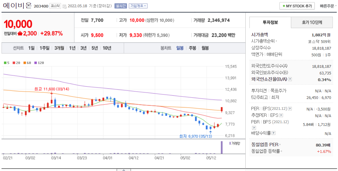 에이비온은 임상 최종 데이터를 오는 6월 미국 임상종양확회에서 발표할 계획이며 현재 글로벌 25상중이며 올 상반기 첫 환자 투약을 목표로 병원을 모집을 진행하고 있다고 한다.
