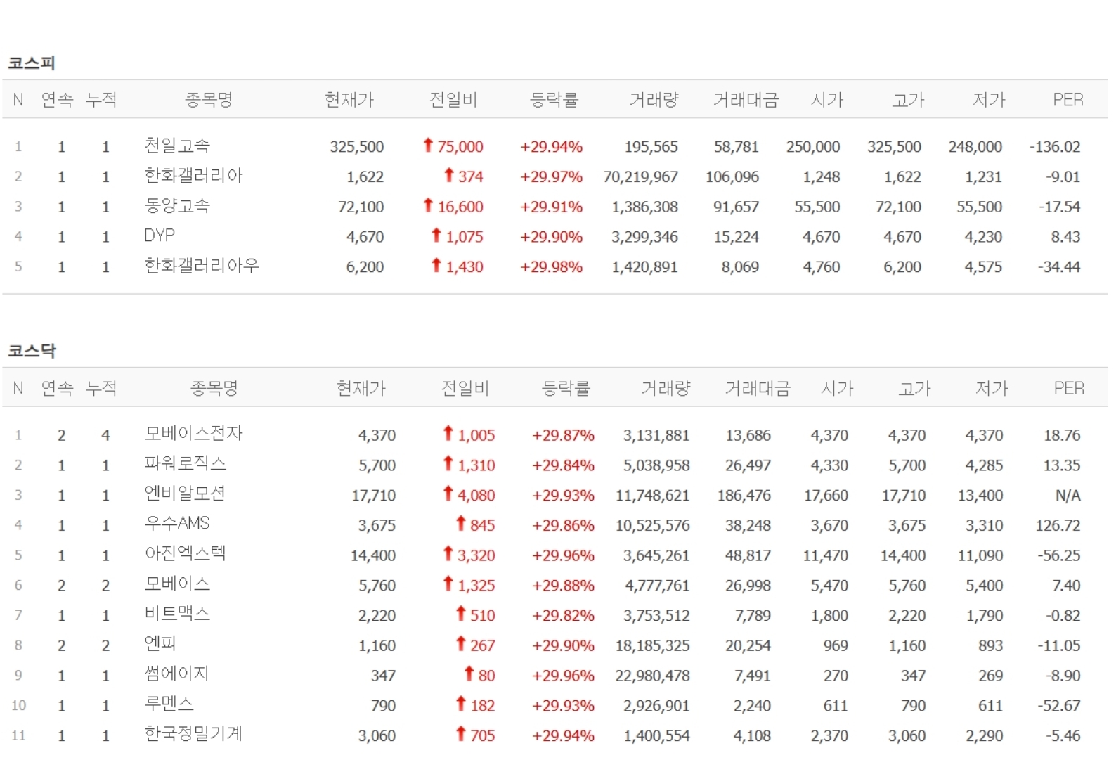 💻 코스닥 상한가 11종목