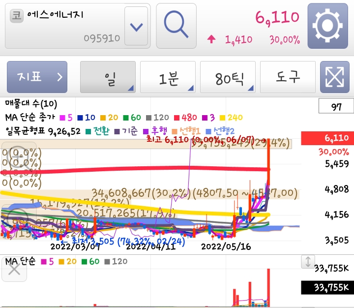 하락장에도 상한가는 나온다. 어려운 장 모두 힘내시고 내 것이 되기 전까진 소량 매매로 공부하는 것이 제일인 거 같다