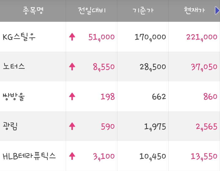 쌍용차 인수건으로 kg스틸과 쌍방울에 2파전으로 재건되면서 쌍용차 인수의 기대감으로 상한가 마감했다 kg그룹 계열사들도 일제히 상승했다.