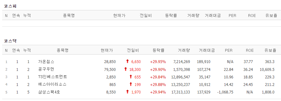 6월14일 상한가 종목