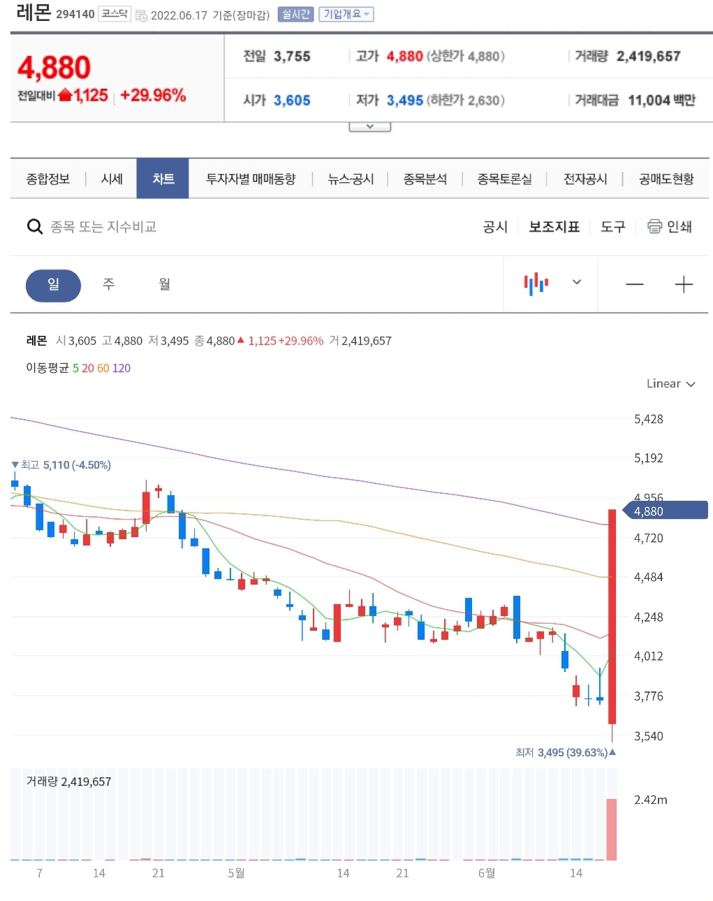 | 6월20일 오늘의 상한가 종목 (0) | 2022.06.20 |