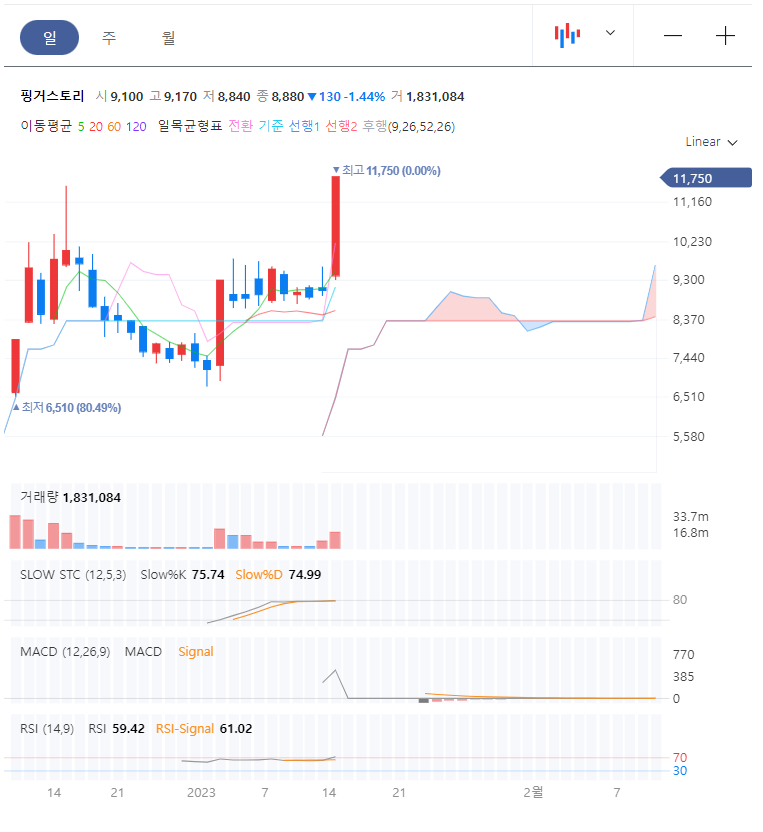 작년 말부터 콘텐츠 관련 테마로 게임, 웹툰, 및 콘텐츠 관련주들이 들썩이고 있었는데, 중국의 한한령 이 해제되면서 중국에서 올해 들어 처음 한국드라마가 방영되었다는 소식에 한한령 완화 의 기대감으로 상승, 상장 후 처음 1만 원대에  안착하면서 상한가로 마무리되었다.