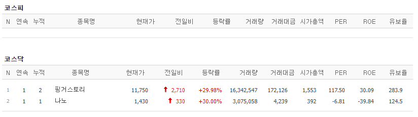 230116-상한가종목 (나노, 핑거스토리)