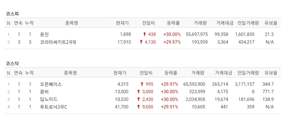9일 신규상장 의 기대감을 따상으로 상한가로마무리했다