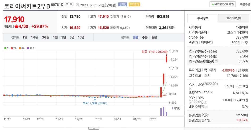마이크로소프트가 검색엔진 '빙'에 챗 GPT와 같은 인공지능모델을 탑재한다는 소식과 지난해 연결 기준매출액 1조 원을 돌파할 것으로 밝히며 상한가로마 감했다