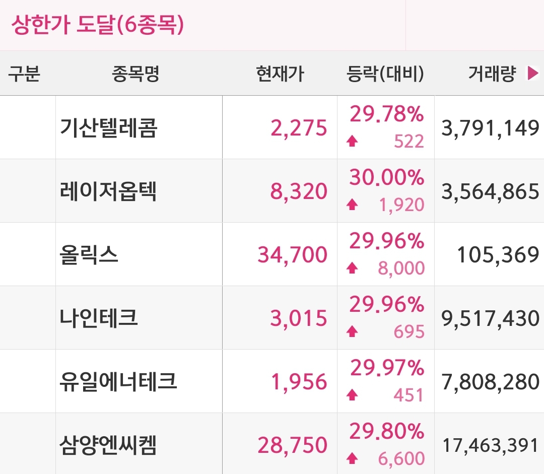 📌 상한가 종목 리스트
