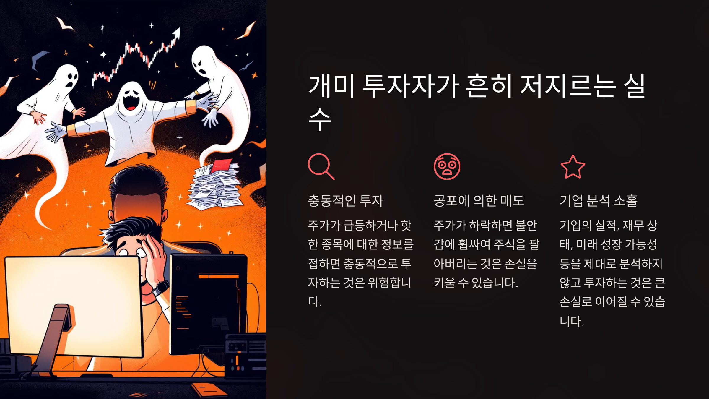 주식 시장은 감정적으로 대응하면 손실을 보기 쉬운 곳이에요. 특히 초보 투자자들은 다음과 같은 실수를 자주 해요.