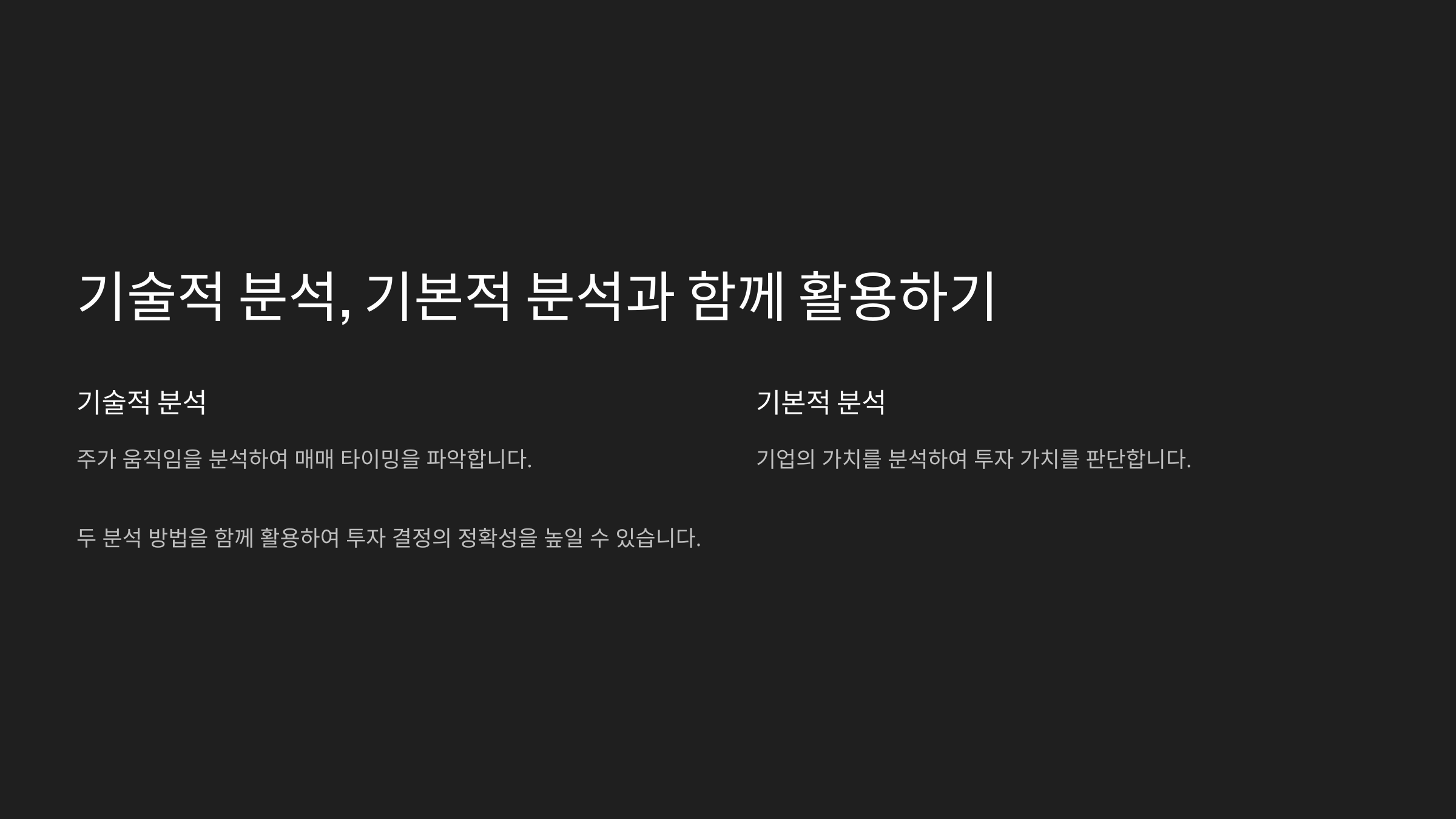 📌 3. 기술적 분석과 기본적 분석의 조화