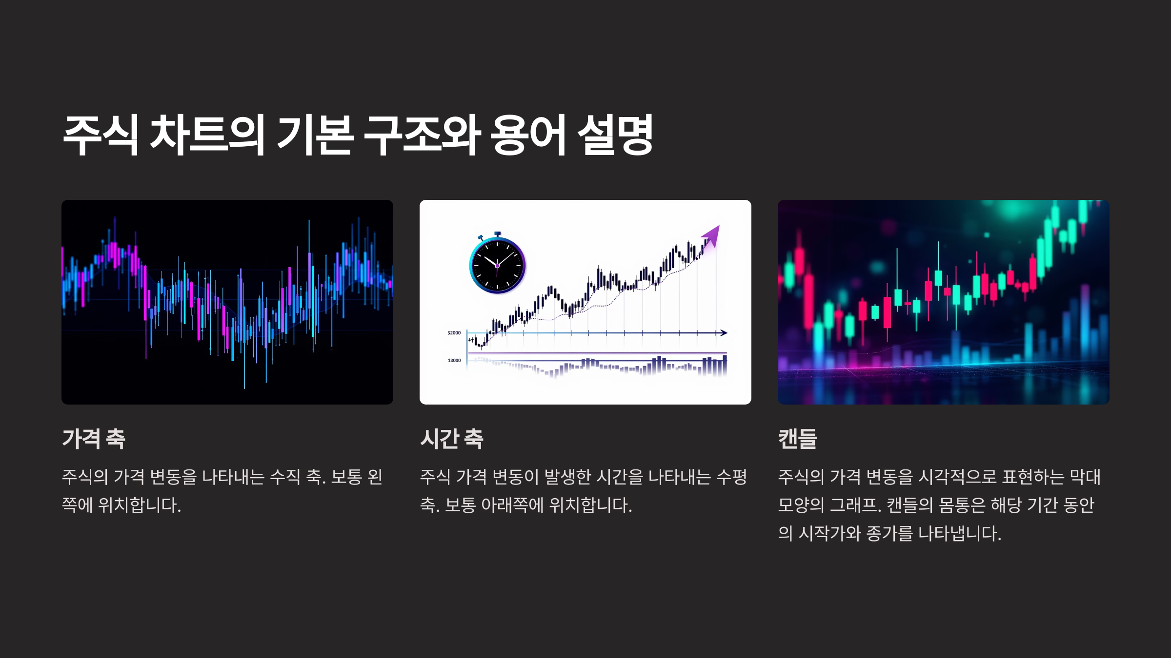 주식 차트는 가격과 거래량을 시각적으로 나타낸 그래프예요. 투자자들은 차트를 분석하여 추세, 매매 타이밍을 파악할 수 있어요. 주식 차트를 제대로 읽으려면 기본 용어부터 익혀야 해요.
