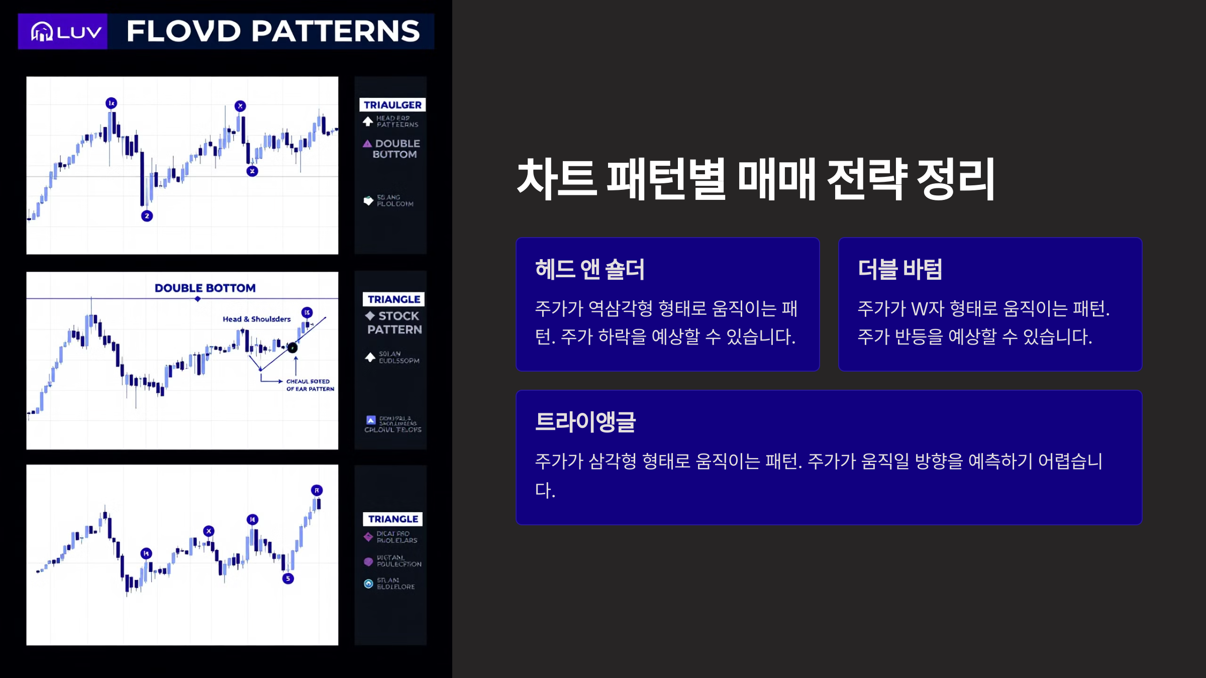 차트 패턴은 주가 움직임의 반복적인 패턴을 분석하여 상승·하락 추세를 예측하는 방법이에요. 패턴을 잘 활용하면 매매 타이밍을 보다 정확하게 잡을 수 있어요.