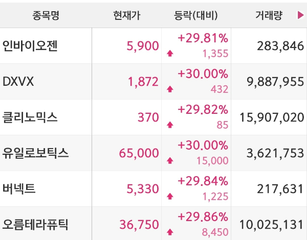 1️⃣ 인바이오젠 (5,900원, ▲29.81%)