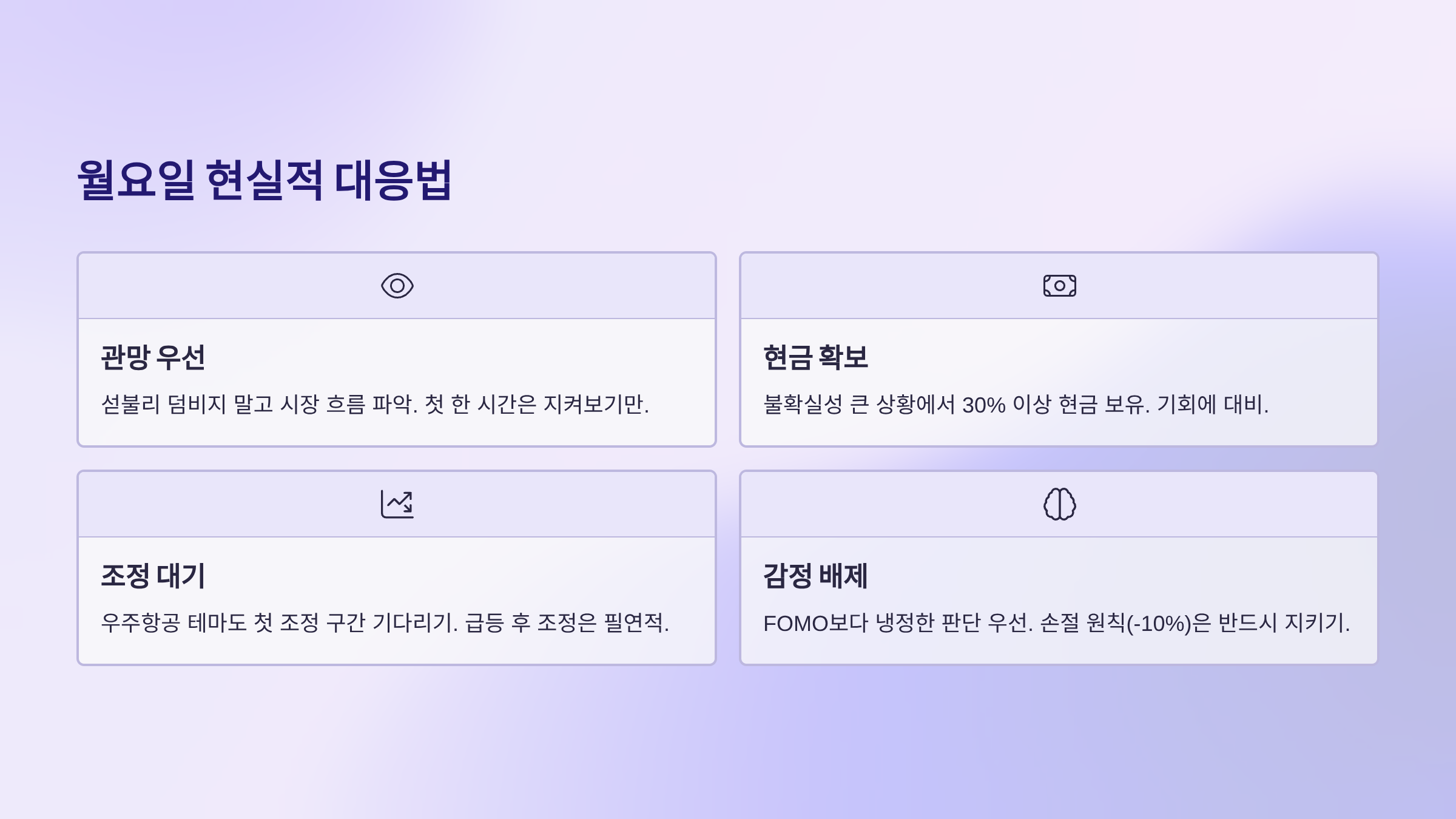 관망이 답: 섣불리 덤비지 말고 시장 흐름부터 파악