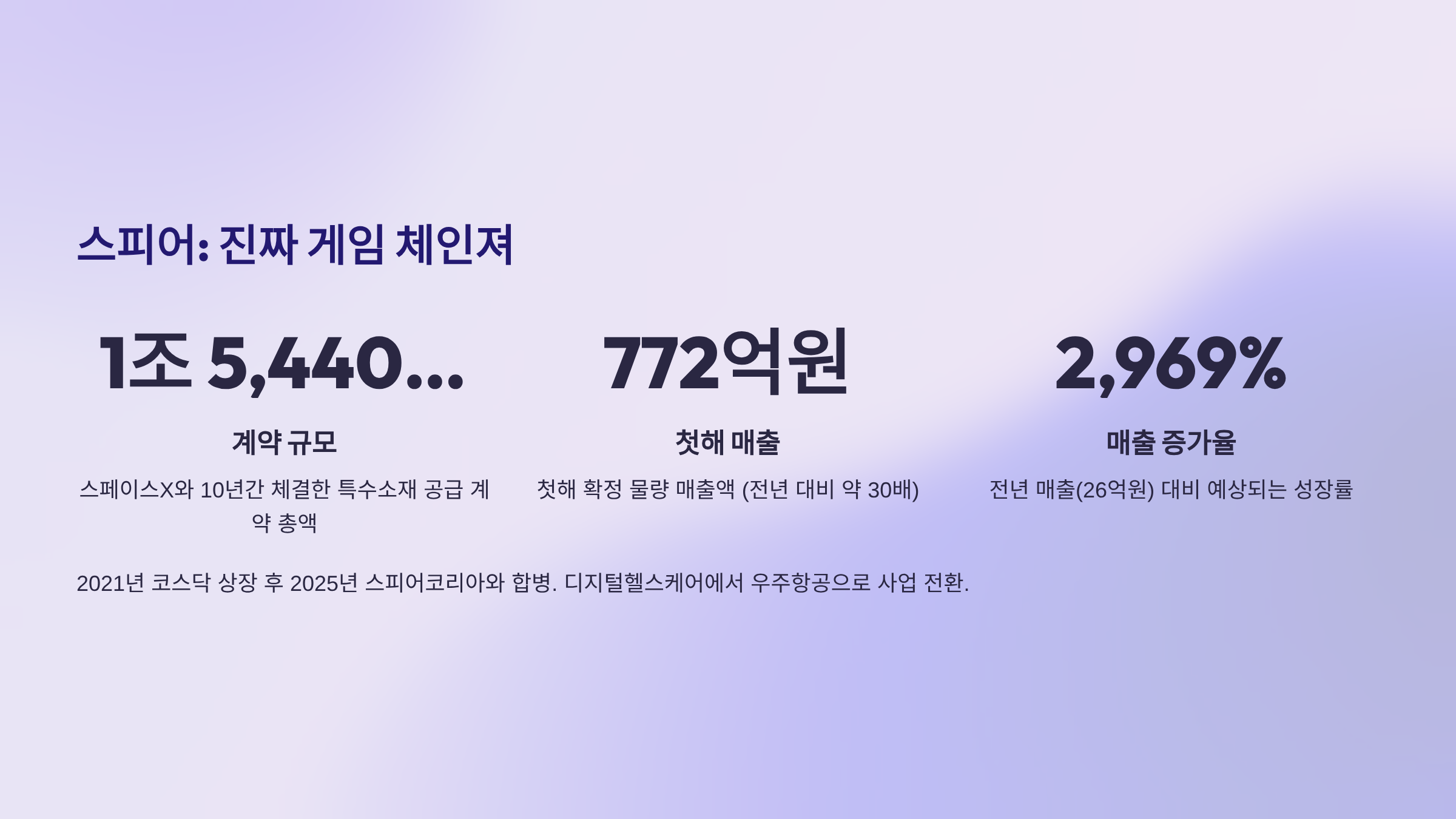 스피어가 어제 공시한 내용을 보고 깜짝 놀랐다. 스페이스X와 10년간 1조 5,440억원 계약을 따냈다고? 이 회사 작년 매출이 26억원이었는데 말이다.