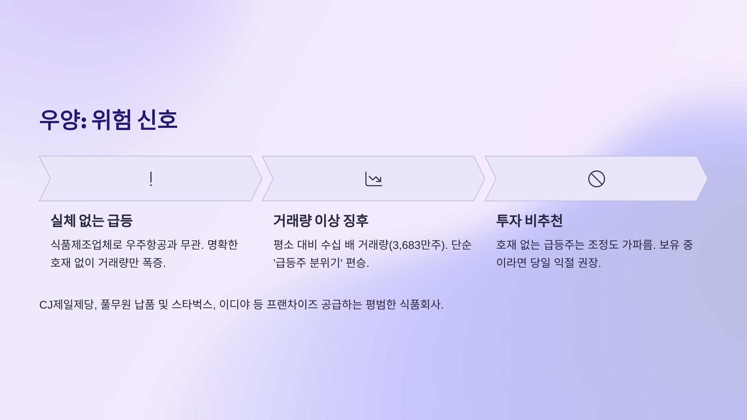 CJ제일제당, 풀무원 같은 데 납품하고, 스타벅스나 이디야 같은 프랜차이즈에도 공급하는 평범한 식품회사다. 뭔가 특별한 게 있나 했는데... 없다.