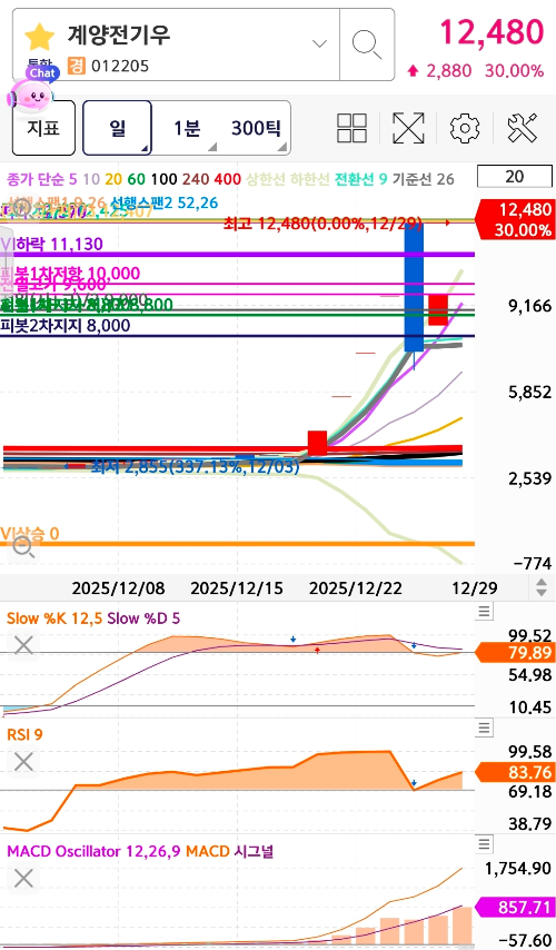 계양전기와 계양전기우는 현재 시장의 주도주로 부상하고 있으며, 기술적 분석 관점에서 의미 있는 흐름을 보여주고 있습니다. 다만, 단기 과열 신호가 존재하기 때문에 무리한 추격매수보다는 거래량, 캔들 변화, 상한가 지속 여부 등 실시간 지표를 중심으로 전략적인 관찰이 필요한 시점입니다.