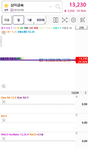 일반 종목은 과거 거래 데이터를 바탕으로 이동평균선, 지지·저항선, 패턴 분석 등이 가능하지만, 삼미금속은 상장 초기로서 거래 이력이 짧고 ‘가격이 처음 형성되는 단계’에 있기 때문에 보조지표보다 거래량과 상한가 유지 여부가 더 중요합니다.