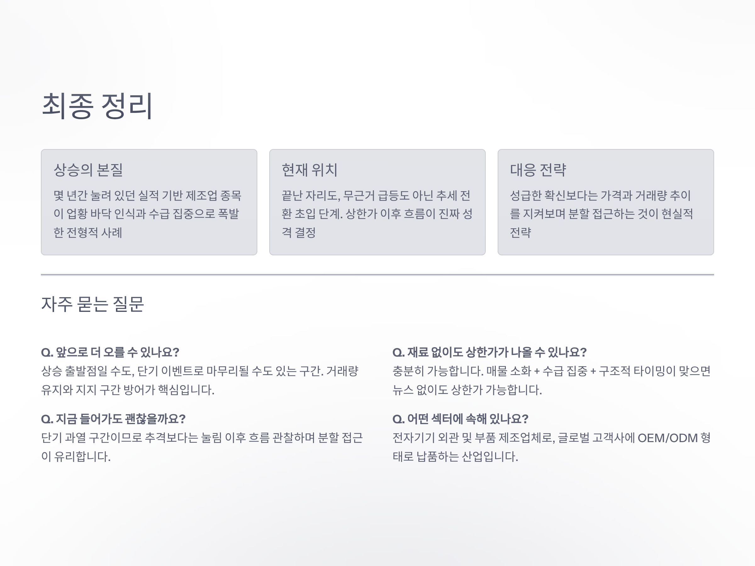 • ⭕ 제조업 실적 사이클 + 수급 구조 + 눌림 해소 → 이것이 이번 상한가의 본질이다.