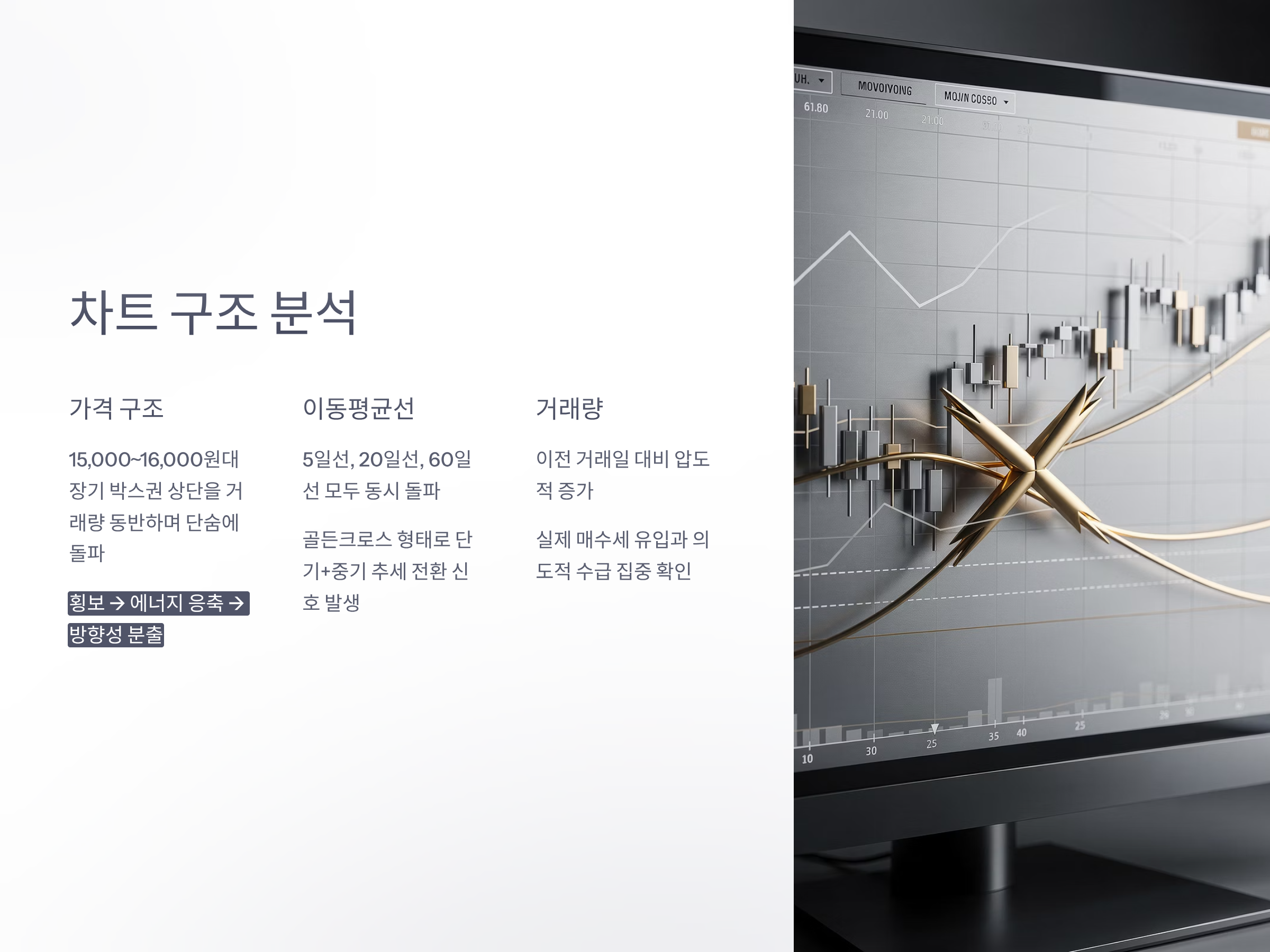 이는 단기 + 중기 추세 전환 신호가 동시에 발생한 것이며, 기술적 분석에서는 흔히 “신호탄”으로 여겨지는 자리다.