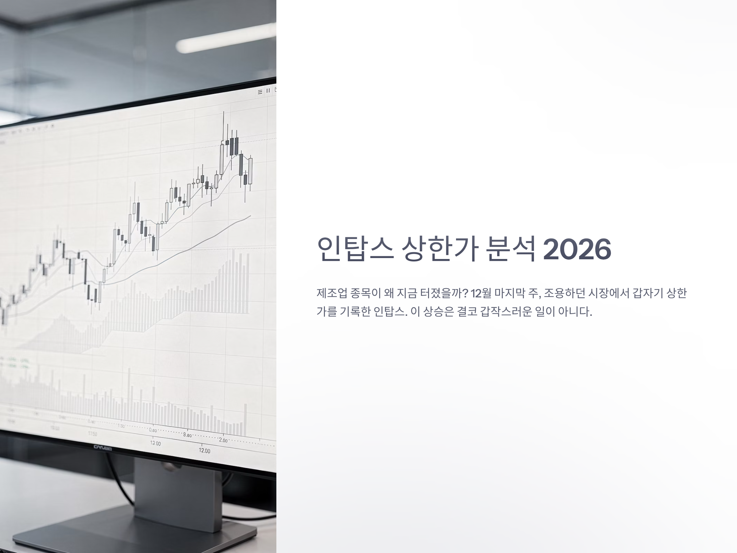 이 글은 단순히 차트를 해석하거나 뉴스 타이틀을 따라가는 것이 아니라, 인탑스의 본질적인 기업 구조, 그동안 눌려 있던 이유, 시장 인식 변화, 수급과 차트의 구조까지 모두 종합해서 설명한다.