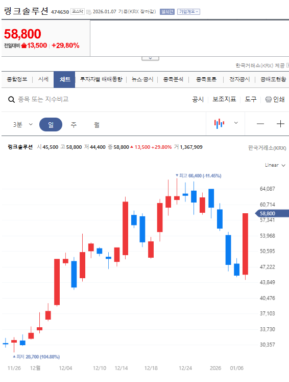 농부가 겨울에 씨앗을 뿌리는 이유는 봄에 필 꽃을 믿기 때문입니다. 주식 시장에서도 우리는 종종 '현재의 숫자'가 아닌 '미래의 꿈'을 삽니다. 오늘 상한가를 기록한 링크솔루션(474650)이 바로 그 '미래'를 파는 기업입니다.