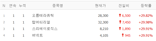 | 오름테라퓨틱 | 바이오·제약 | 신약 개발 기대감 | +30% (25,000원) |