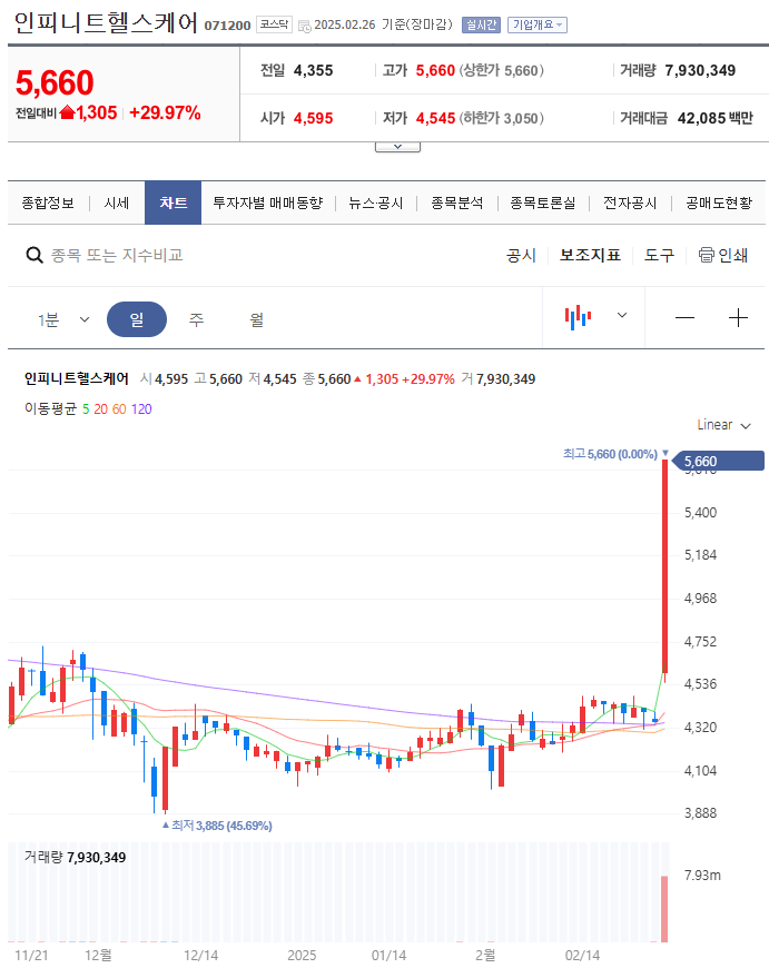 📌 인피니트헬스케어 (5,660원, +29.97%)
