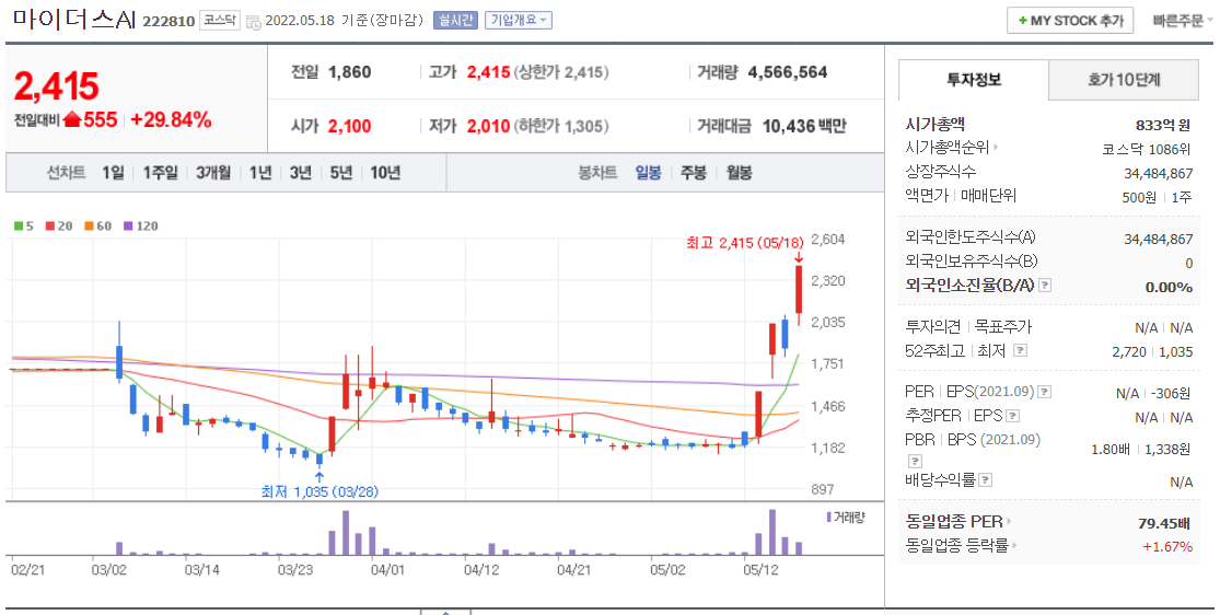 마이더스AI 가 스테인리스강 전문기업인 제이슨앤컴퍼니 를 인수한다는 소식에 상한가로 마무리 되었다.