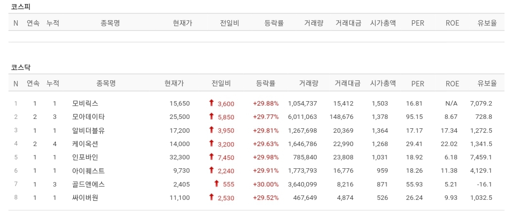 국내 게임사 모비릭스의 주가가 무상증자에 대한 기대감에 전일 대비 약 30% 급등 으로 상한가로 마감했습니다 모비릭스는 광고기반의 케주얼게임을 만드는회사인데요